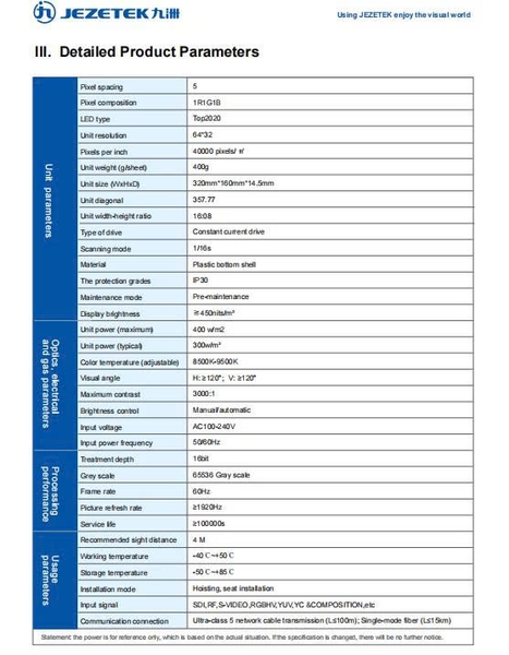 Màn hình LED JEZETEK P5 320×160 là dòng sản phẩm cao cấp, được thiết kế dành riêng cho không gian trong nhà với khả năng trình chiếu sắc nét, màu sắc trung thực và tuổi thọ cao.