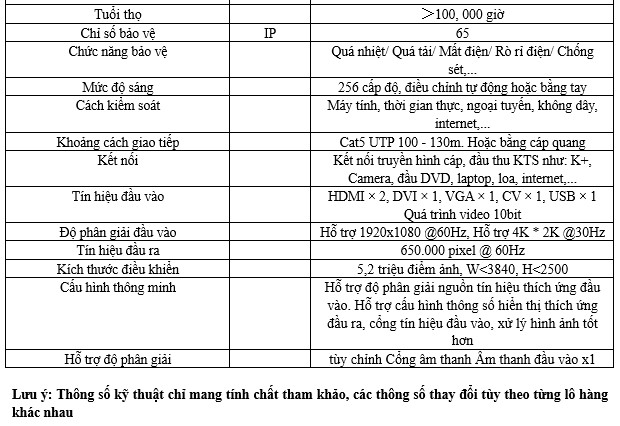 THÔNG SỐ KỸ THUẬT P10 NGOÀI TRỜI