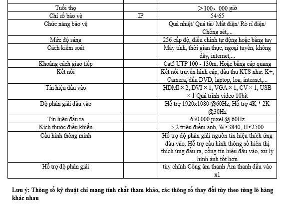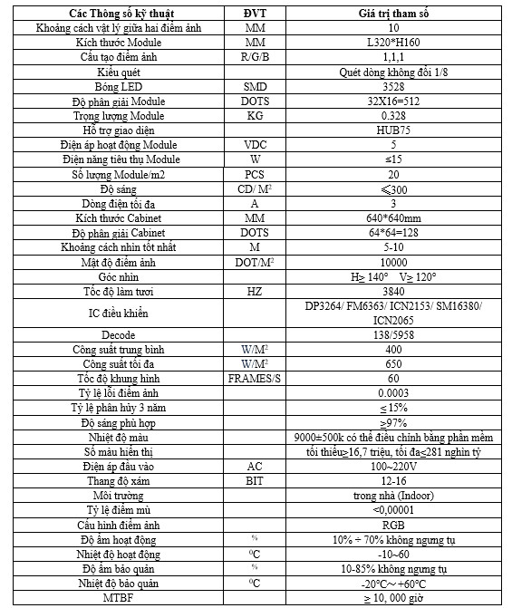 THÔNG SỐ KỸ THUẬT P10 TRONG NHÀ