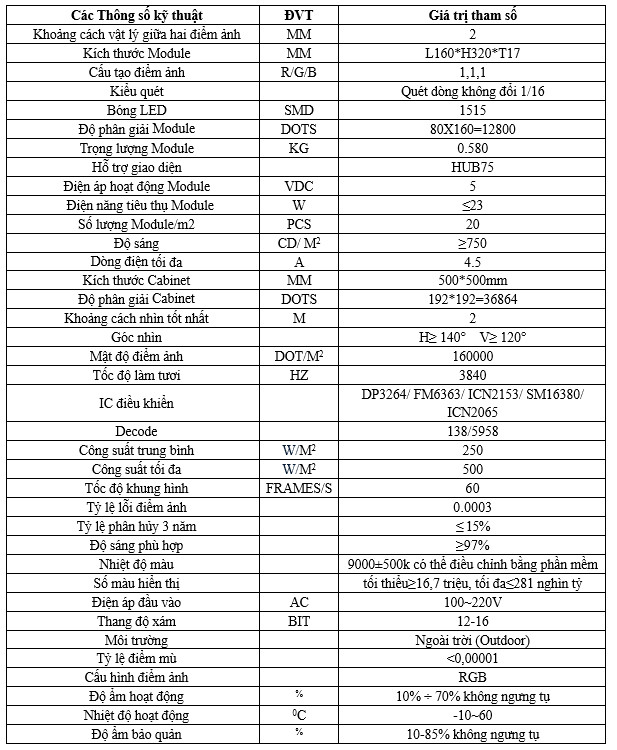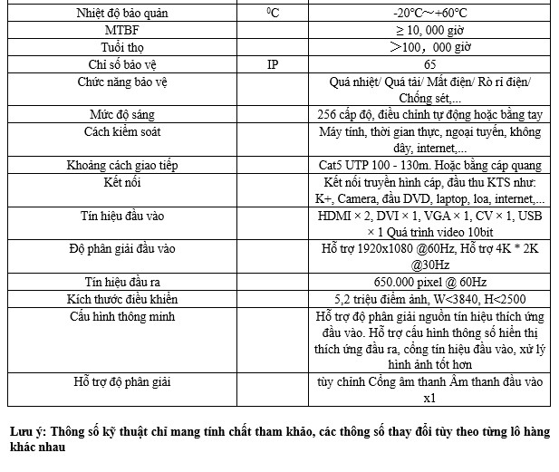 - Mặt trước và mặt sau của màn hình LED P2.5 ngoài trời lần lượt được chứng nhận IP65 và IP54, cho phép hoạt động ổn định, không bị ảnh hưởng bởi thời tiết