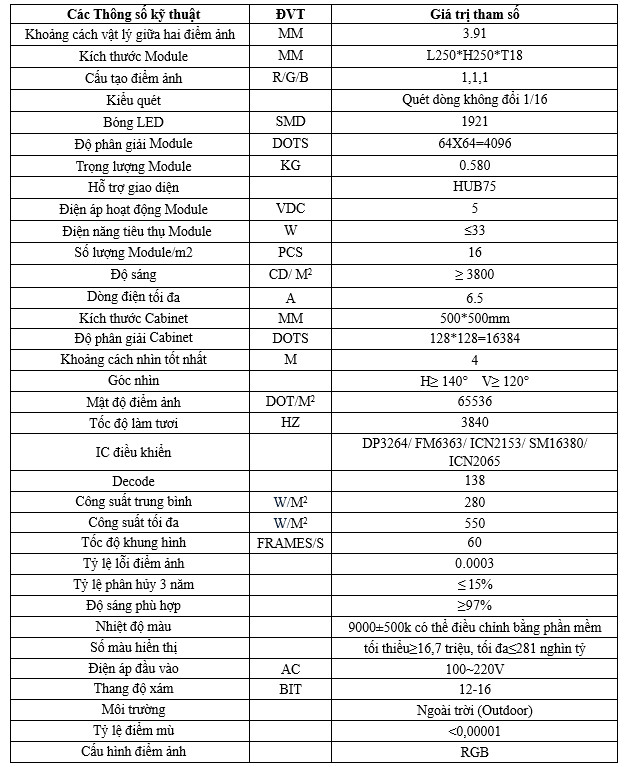+ Độ phân giải của P3.91 tương tự P3 là 64*64 pixel, tức vào khoảng 65.536 pixel /m². Mật độ điểm ảnh tương đối dày, vì vậy chất lượng hình ảnh sẽ được bảo đảm độ tương đồng của các điểm ảnh. Chất lượng ảnh, video 2K, 4K đều có thể trình chiếu tốt trên màn hình P3.91.