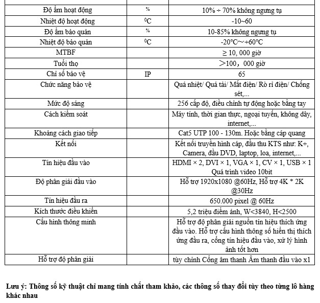 + Độ sáng cân đối chuẩn 1200 cd/m2 phù hợp với cả những sân khấu ngoài trời trong những chương trình ca nhạc, buổi tiệc rượu được tổ chức buổi tối. Tần số làm mới hình ảnh là 1920 Hz sẽ mang đến những màu sắc chân thực và sặc sỡ nhất. Góc nhìn tốt nhất ngang/dọc là khoảng 140⁰/140⁰. Nếu góc nhìn lớn hơn màu sắc hình ảnh sẽ bị lóa.