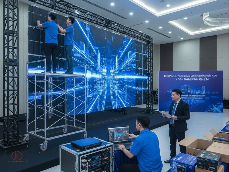 Đội ngũ kỹ thuật viên của Tospino giàu kinh nghiệm, được đào tạo bài bản về thi công, lắp đặt và bảo trì màn hình LED. Công ty áp dụng chính sách bảo hành 12–24 tháng, cùng dịch vụ hỗ trợ kỹ thuật 24/7, xử lý nhanh mọi vấn đề phát sinh. Khách hàng luôn được đồng hành và tư vấn tận tâm, đảm bảo màn hình LED hoạt động ổn định và hiệu quả lâu dài